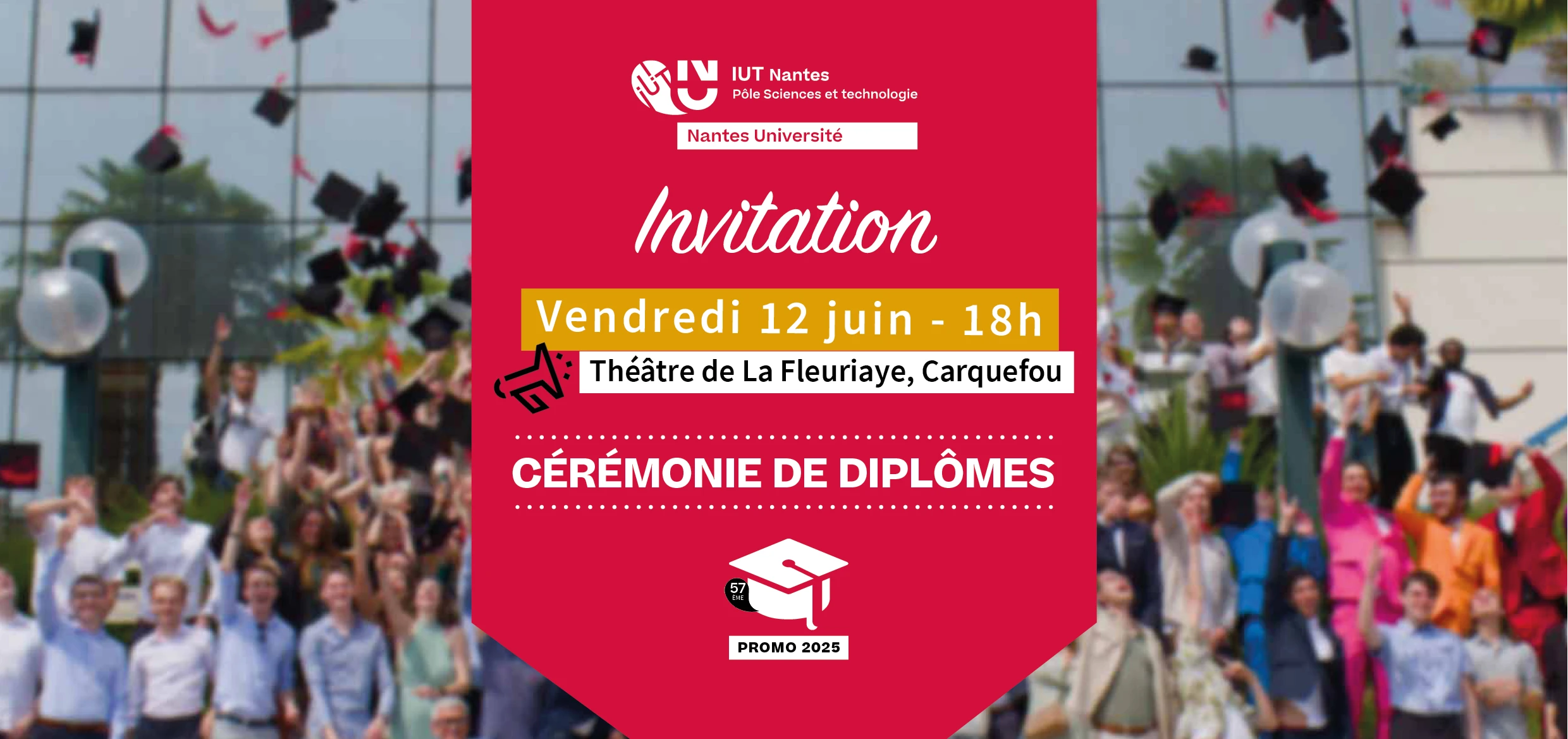 La cérémonie de diplômes pour la promotion 2025 des BUT, LP & MASTER se déroulera vendredi 12 juin à partir de 18h00.